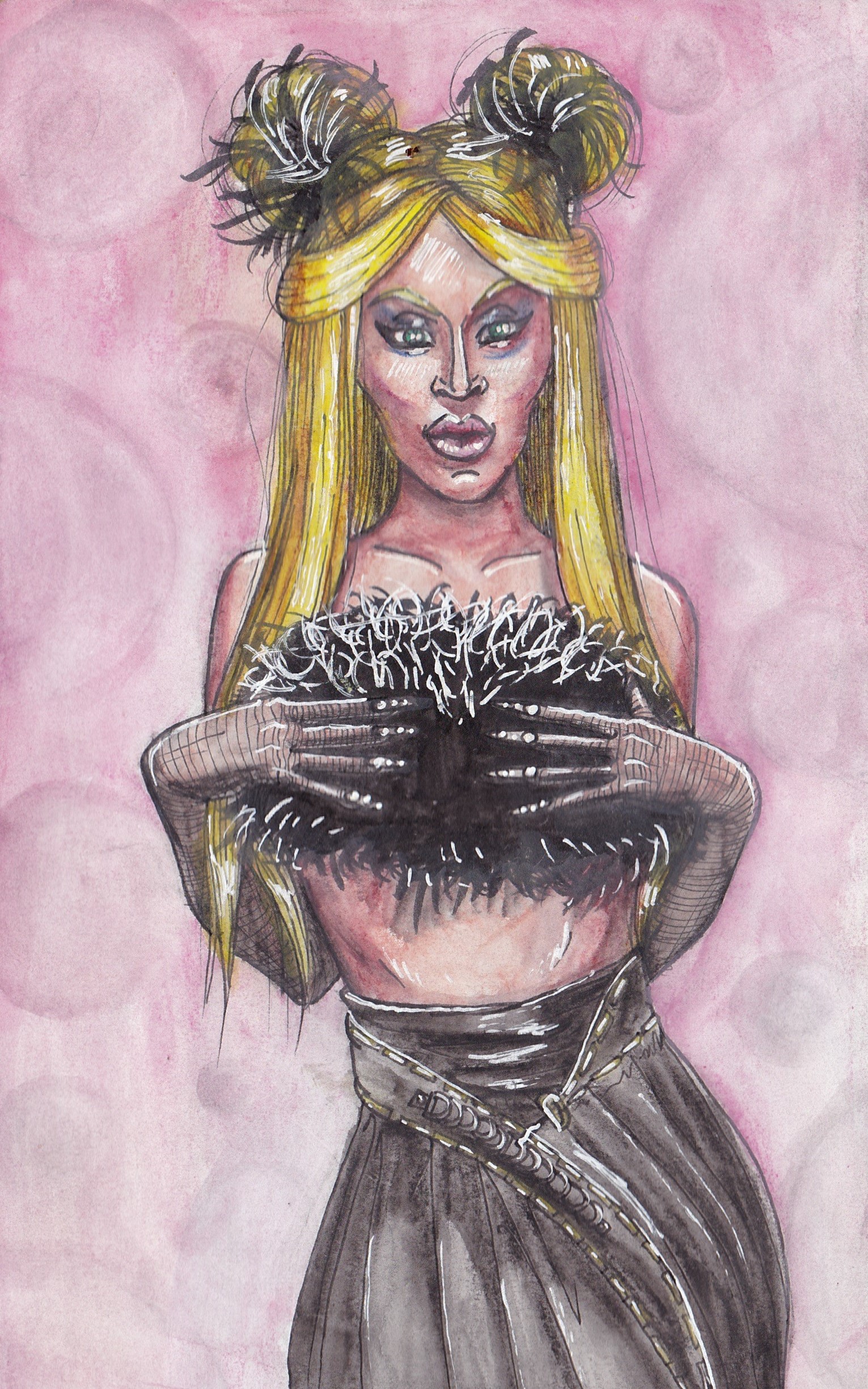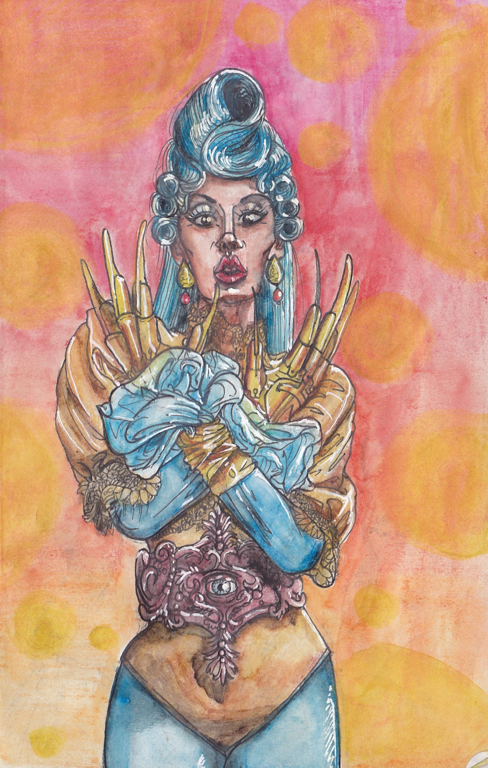 cela m’a permis de travailler la féminité de part les gestes, le maquillage et les courbes des corps mais aussi l’extravagance qui les caractérisent, en particulier dans les poses.